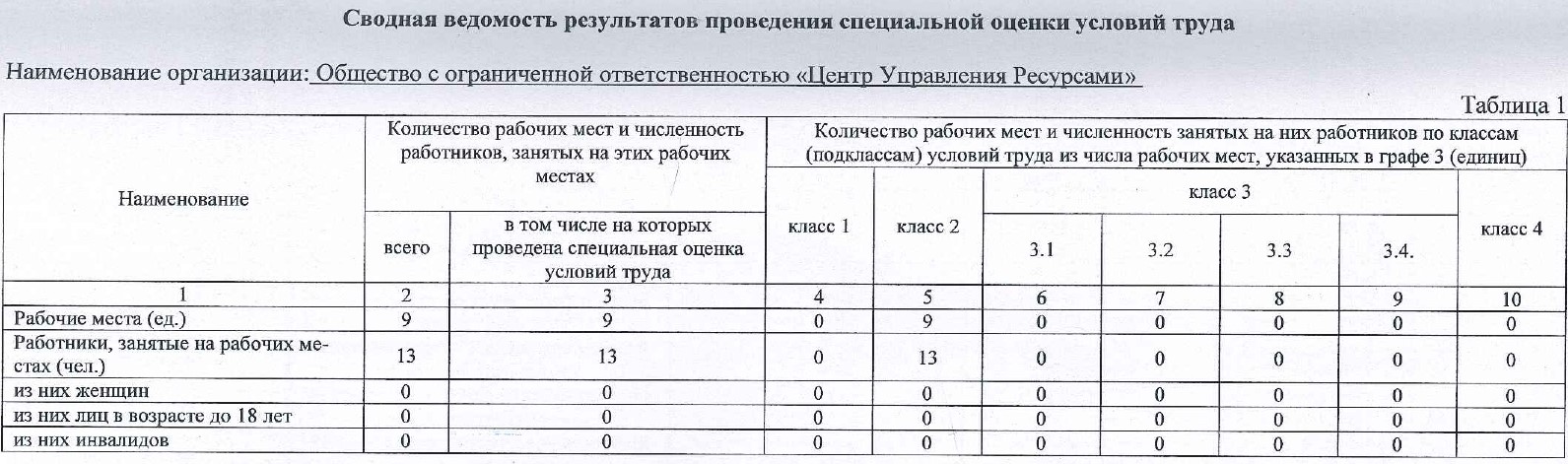 Отчёт о проведении СОУТ в ООО «Центр управления ресурсами» от 25.01.2023 г.