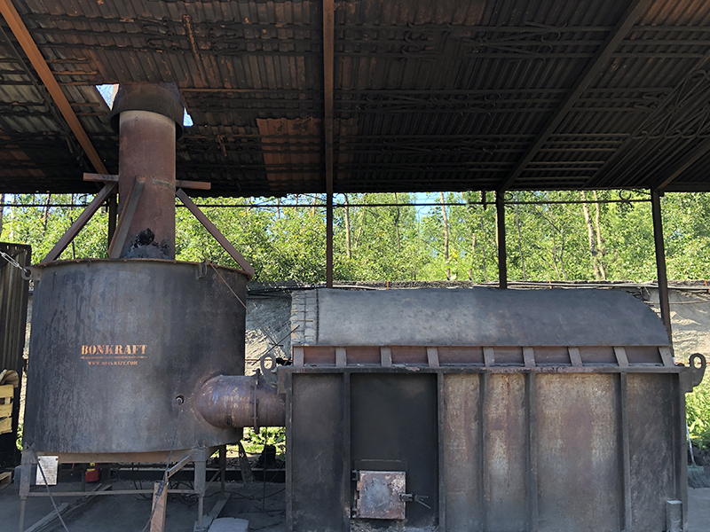 Дымовые газы, образовавшиеся при сжигании отходов, из камеры сжигания поступают в камеру дожигания. Дожигание отходящих газов происходит при температуре 1000-1200°С в камере дожигания в течение не менее 2-х секунд с предварительным прохождением газов через факел горелки с температурой до 1500°С.